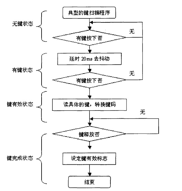 密集架移動列中的鍵盤處理過程,是通過軟件對鍵盤按鍵的1/0信號進(jìn)行掃描,以判斷按鍵事件。通常密集架一個按鍵掃描程序,要有以下幾個過程: